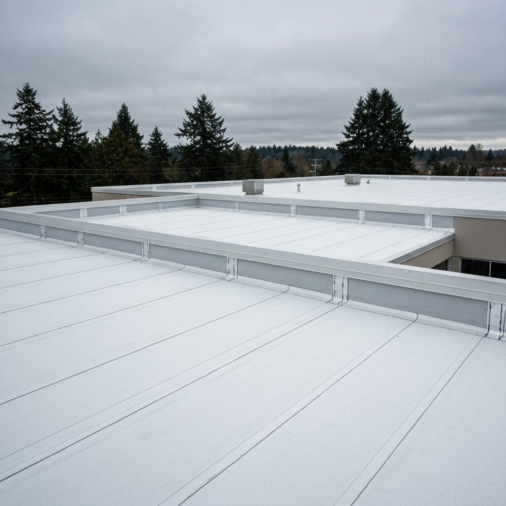 White TPO and PVC membranes also contribute to energy efficiency by reflecting solar radiation during summer months. While Seattle is not known for extreme heat, summer temperatures routinely reach the 80s and 90s, and a reflective roof surface can reduce cooling loads by 10 to 15 percent compared to dark-colored roofing.